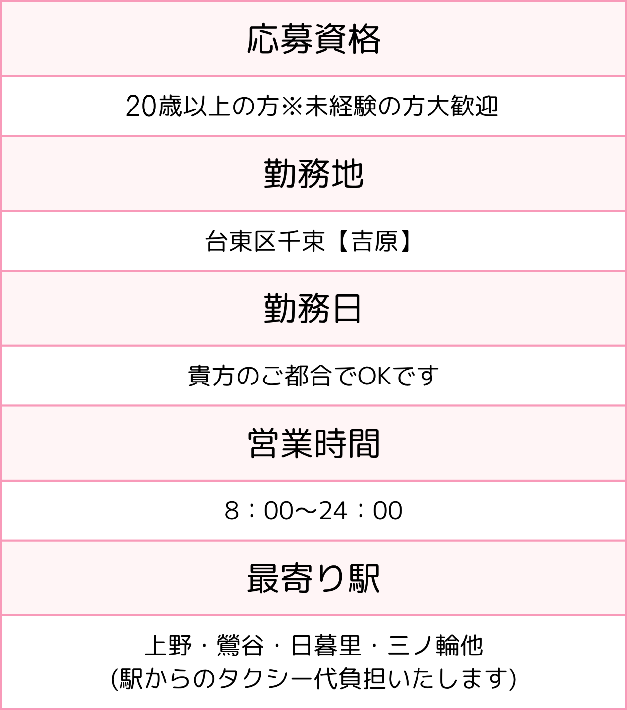 上野駅・鶯谷駅・日暮里駅・三ノ輪駅 各駅からのタクシー代負担いたします。